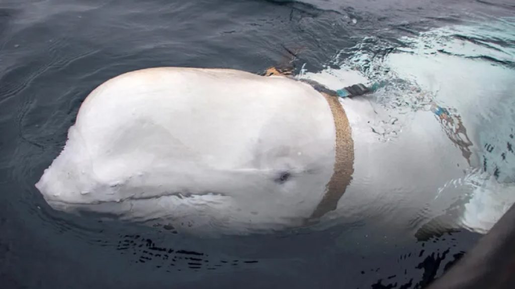 ২০১৯ সালে প্রথমবার তিমিটি দেখা যায় নরওয়ের উত্তরাঞ্চলে। ওই সময় মেরিন বায়োলজিস্টরা প্রাণীটির শরীর থেকে একটি ট্র্যাকিং ইকুয়েপমেন্ট সরান। যার মধ্যে ছিল একটি ক্যামেরা। তাছাড়া, সেন্ট পিটার্সবার্গের নাম খোদাই করা একটি প্লাস্টিক বেল্ট ছিল গলায়। ক্যামেরার ভিডিও বিশ্লেষণে দেখা যায়, রুশ নেভিরা তিমিটিকে প্রশিক্ষণ দিয়েছেন।