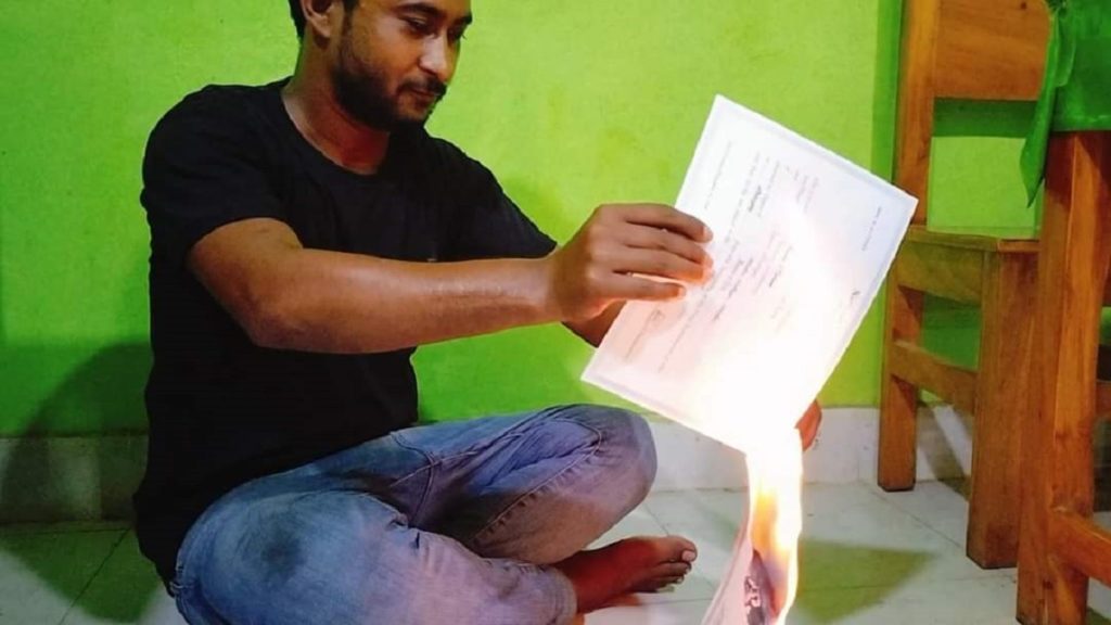এবার নেত্রকোণায় ফেসবুক লাইভে এসে নিজের সব অ্যাকাডেমিক সার্টিফিকেট পুড়িয়ে ফেলেছেন ঢাকা কলেজের সাবেক শিক্ষার্থী আব্দুস সালাম। সরকারি চাকরির জন্য অসংখ্য আবেদন করেও চাকরি পাননি তিনি। সরকারি চাকরিতে প্রবেশের বয়সও শেষ। তাই সব অ্যাকাডেমিক সনদপত্র পুড়িয়ে ফেলেছেন।