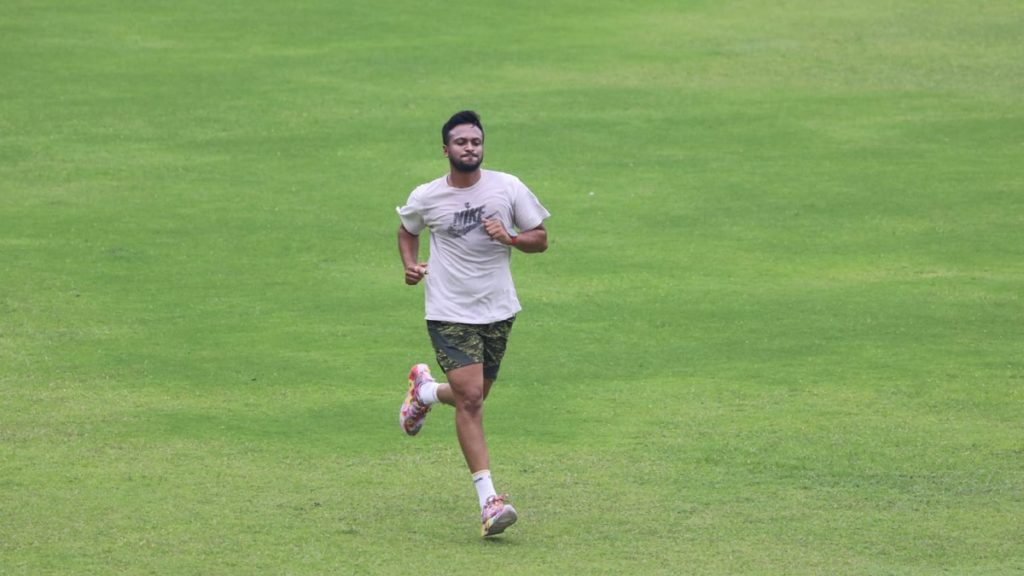 বেশ কিছুদিন ধরেই মাঠের বাইরে থাকায় ফিটনেসের সমস্যা আছে এই অলরাউন্ডারের। মিরপুরে এসেই ফিটনেস ধরে রাখতে প্রায় ৩০ মিনিটের মতো রানিং সেশন করেছেন সাকিব।