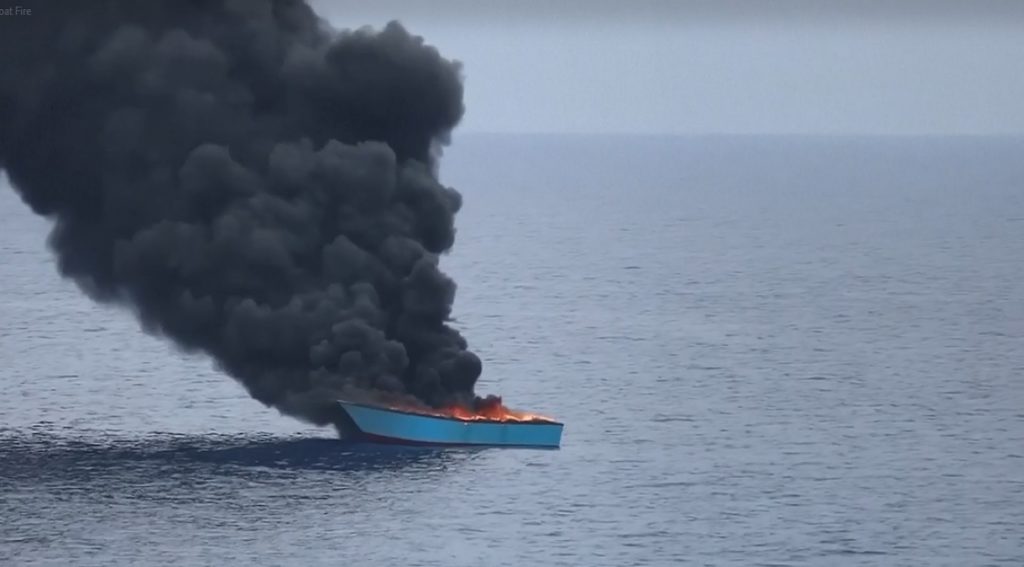 সম্প্রতি দাতব্য সংস্থা ডক্টরস উইদাউট বর্ডার এমএসএফ সামাজিক যোগাযোগ মাধ্যমে প্রকাশ করেছে ঘটনাটির ভিডিও। অবৈধভাবে ইউরোপ যাওয়ার পথে প্রায় ৫০ জন যাত্রী নিয়ে দুর্ঘটনার কবলে পড়ে কাঠের নৌকাটি। ধোঁয়া দেখে ঘটনাস্থলে পৌছায় লিবিয়ার কোস্টগার্ড। যাত্রীদের দ্রুত সরিয়ে নেওয়া হয় অন্য একটি জাহাজে।
