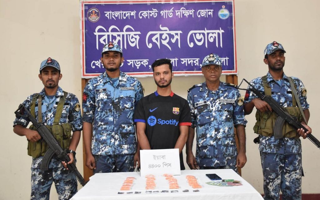 ভোলায় ইয়াবা ও নগদ টাকাসহ মো. ফেরদৌস হোসেন (২৫) নামে এক যুবককে আটক করেছে কোস্টগার্ড দক্ষিণ জোনের সদস্যরা। এ সময় তার কাছ থেকে ৪ হাজার ৪শ’ পিস ইয়াবা ও নগদ ২ হাজার ৭৩২ টাকা উদ্ধার করা হয়।