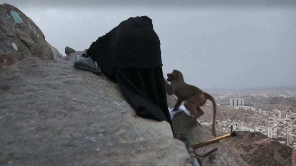 পবিত্র মক্কা নগরীর আল নূর পর্বতে গিয়ে দুষ্টু বানরের খপ্পড়ে পড়লেন এক হজ যাত্রী। রীতিমতো টানাটানি করে তার কাছ থেকে এহরামের কাপড়ের টুকরো নিয়ে দৌড়ে পালায় প্রাণিটি। খবর রয়টার্সের।