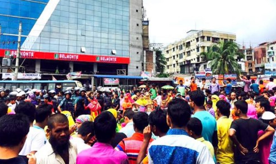 রাজধানীর দক্ষিণ খান থানার ডিউটি অফিসার কবীর হোসেন জানিয়েছেন, ঈদের আগে দক্ষিণ খান এলাকার একটি পোশাক কারখানায় কর্মী ছাঁটাইয়ের প্রতিবাদে গত দু’দিন ধরে তারা আন্দোলন করছে। পরিস্থিতি সামলা দিতে শ্রমিক ও মালিকপক্ষের সাথে বৈঠক করা হয়েছে বলেও জানান তিনি।