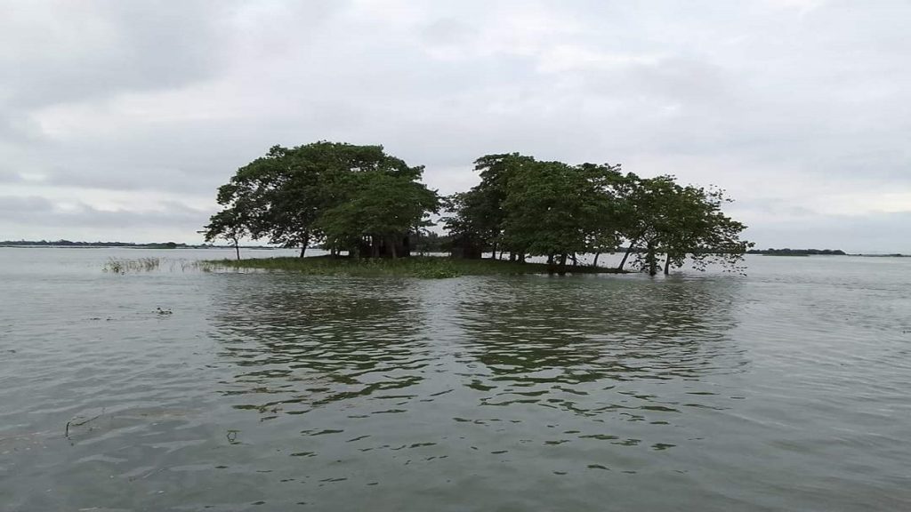 স্থানীয়দের বরাতে উপজেলা সমাজসেবা কর্মকর্তা মাসুল তালুকদার জানান, মঙ্গলবার ওই শম্মান ঘাটের পাশ দিয়ে যাওয়ার সময় শিশুটিকে চোখে পড়ে মান্দারুয়া গ্রামের সরাজ মিয়ার স্ত্রী জয়বানু ও তার ছেলে তপন মিয়ার। উঁচু শশ্মান ঘাটটির চারদিকে পানি ও আশপাশে কোনো লোকজন না থাকায় তারা শিশুটিকে তাদের বাড়িতে নিয়ে যান। পরে, তাদের প্রতিবেশীরা শিশুটির ছবি ফেসবুকে পোস্ট করলে বিষয়টি জানতে পারে স্থানীয় প্রশাসন ও এলাকাবাসী।