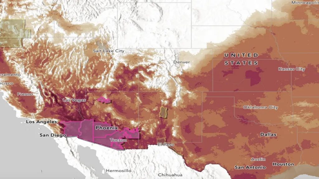 গেলো কয়েক সপ্তাহ ধরেই তীব্র দাবদাহে পুড়ছে যুক্তরাষ্ট্রের দক্ষিণ-পশ্চিমাঞ্চল। অ্যারিজোনা, টেক্সাসে ৪৮ ডিগ্রী সেলসিয়াসের ওপরে পৌঁছেছে গড় তাপমাত্রা।