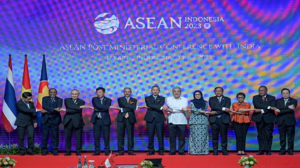 ইন্দোনেশিয়ার জার্কাতায় দু’দিন ধরে চলছে এশীয়-প্রশান্ত মহাসাগরীয় দেশগুলোর জোট-আসিয়ানের পররাষ্ট্রমন্ত্রী পর্যায়ের সম্মেলন। ৪২তম এই অধিবেশনে সদস্য দেশগুলোর পাশাপাশি অংশ নেয় চীন-রাশিয়া এবং ভারত।