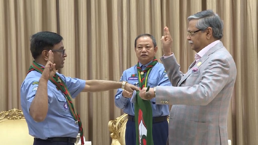 বাংলাদেশের চিফ স্কাউট হিসেবে আনুষ্ঠানিক দীক্ষা নিয়েছেন রাষ্ট্রপতি মো. সাহাবুদ্দিন। রোববার (১৬ জুলাই) দুপুরে বঙ্গভবনে এক অনুষ্ঠানের মধ্য দিয়ে চিফ স্কাউট হিসেবে তিনি দীক্ষা গ্রহণ করেন তিনি।