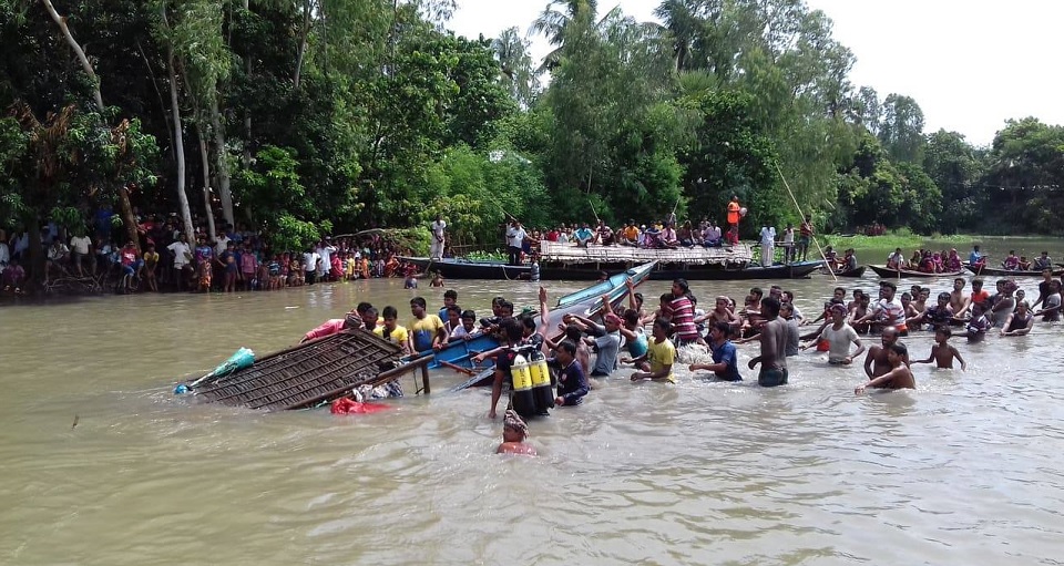 প্রত্যক্ষদর্শীরা জানান, ধারণ ক্ষমতার চেয়ে নৌকাটিতে যাত্রী বেশি ছিল ফলে হঠাৎই নৌকাটি ডুবে যায়। এসময় ১৭ জন জীবিত উদ্ধার হলেও, ৫ জন পানির স্রোতে তলিয়ে যান।
