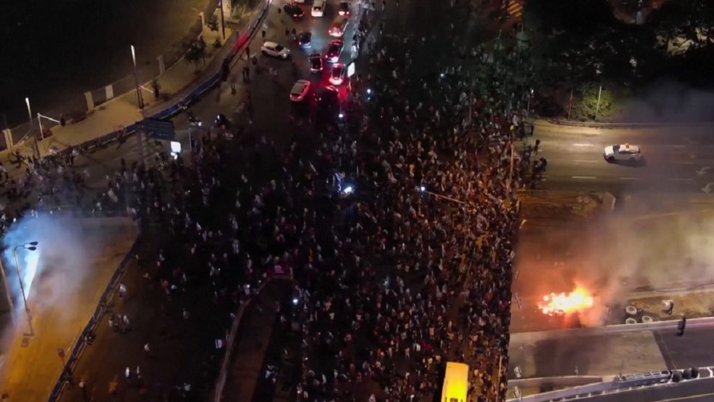 রাজধানীর দুইটি গুরুত্বপূর্ণ সড়ক অবরোধ করেন আন্দোলনকারীরা। এ সময় সরকার বিরোধী স্লোগান দেন তারা। তখন জলকামান ও টিয়ার গ্যাস ছুড়ে আন্দোলন ছত্রভঙ্গ করে পুলিশ। ধরপাকড়ের শিকার হন কমপক্ষে ১৫ ইসরায়েলি।
