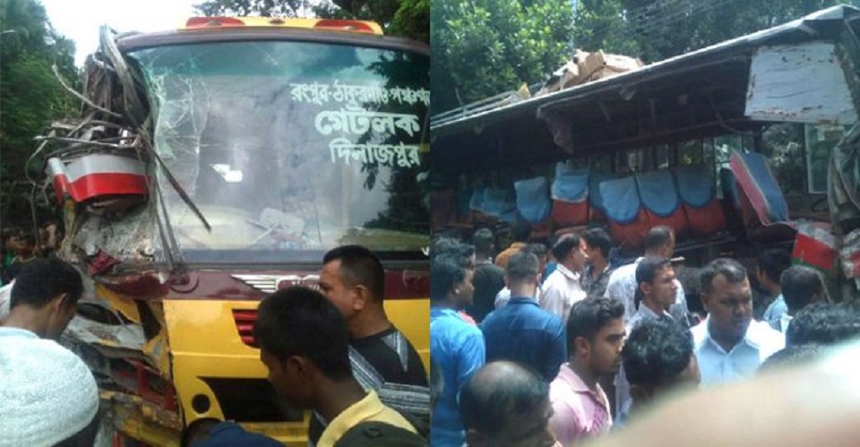 জানা যায়, বগুড়া থেকে পঞ্চগড়গামী একটি বিআরটিসি বাস সিও বাজার পৌঁছলে বিপরীতমুখী ঠাকুরগাঁও থেকে ছেড়ে আসা রংপুরগামী অন্য একটি বাসের সঙ্গে মুখোমুখি সংঘর্ষ হয়। এ ঘটনায় ৪ জন নিহত হন। তবে তাৎক্ষণিকভাবে হতাহতদের পরিচয় জানা যায়নি।