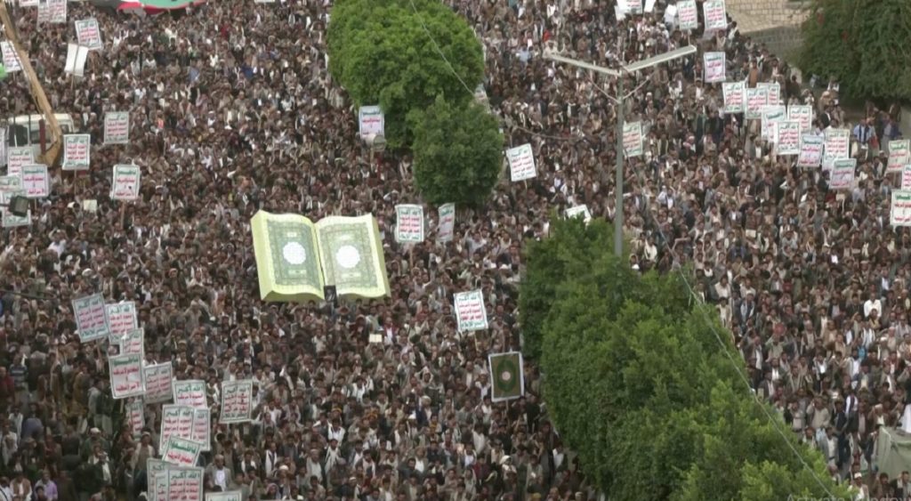 রাজধানী সানার ক্ষমতায় থাকা হুতিদের ডাকে রাস্তায় নামেন হাজার হাজার ইয়েমেনী। তাদের হাতে ছিলো ছুরি, পিস্তল, একে ফোরটি সেভেনের মতো অস্ত্র। তাদের দাবি, সর্বসম্মুখে ক্ষমা প্রার্থনা করুক পশ্চিমা দেশগুলোর সরকার। তাদের অভিযোগ, সমকামিতায় বিশ্বাসী দেশগুলোর কাছে ইসলামি মতাদর্শের কোন মূল্য নেই।
