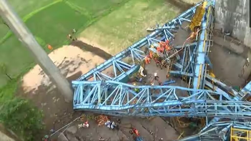 খবরে বলা হয়েছে, থানের সরলামবে গ্রামের কাছে একটি সেতু নির্মাণ করার সময় এ দুর্ঘটনা ঘটে। নিহতরা ছাড়াও ধ্বংসস্তূপের নিচে আরও বেশ কয়েকজন আটকা পড়ার আশঙ্কা করা হচ্ছে। নির্মাণকাজের সময় গার্ডার মেশিনের সঙ্গে সংযোগকারী ক্রেন এবং স্ল্যাব ১০০ ফুট উঁচু থেকে পড়ে গেলে বড় এ দুর্ঘটনা ঘটে। আহতদের পাশাপাশি মৃতদেহগুলোকেও স্থানীয় হাসপাতালে নিয়ে যাওয়া হয়েছে।