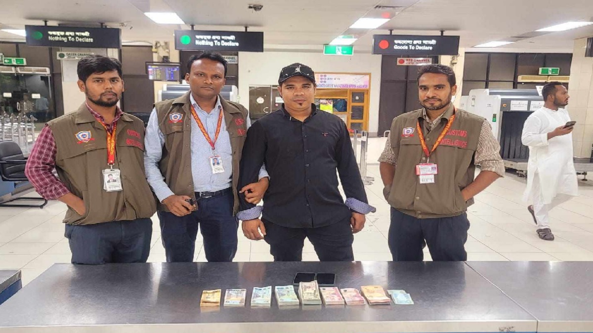 বিমানবন্দর সূত্রে জানা গেছে, ওই যাত্রীর কাছ থেকে ১ লাখ ৩৬ হাজার ৮৫০ ইউএই দিরহাম (প্রতি দিরহাম ২৯ টাকা দরে ৩৯ লাখ ৬৮ হাজার ৬৫০ টাকা, ৮ হাজার ৩৫০ ইউএস ডলার (প্রতি ডলার ১০৮ দশমিক ৫০ টাকা দরে ৯ লাখ ৫ হাজার ৯৭৫ টাকা, ৬১৮ ওমানি রিয়াল (প্রতি ওমানি রিয়াল ২৭০ টাকা দরে ১ লাখ ৬৬ হাজার ৮৬০ টাকা), ৪০০ সৌদি রিয়াল (প্রতি সৌদি রিয়াল ২৭ দশমিক ৪০ টাকা দরে ১০ হাজার ৯৬০ টাকা, ২০০ ইউরো (প্রতি ইউরো ১২০ টাকা দরে ২৪ হাজার টাকা উদ্ধার ও আটক করে নিরাপত্তা বাহিনী। এনএসআই উক্ত যাত্রীকে বিমানবন্দর টার্মিনালের আন্তর্জাতিক অ্যান্টি হাইজ্যাকিং গেটে তল্লাশি ও জিজ্ঞাসাবাদ করে।