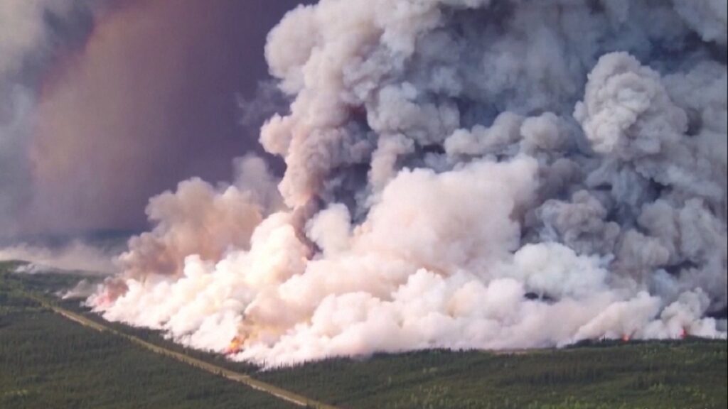 গত কয়েক মাস ধরেই দাবানলে বিপর্যস্ত কানাডা। যার মাঝে উত্তর-পশ্চিমাঞ্চলেই ২৩০টি জায়গায় আগুন সক্রিয়। জলবায়ু পরিবর্তনের দরুণ গরম ও শুষ্ক আবহাওয়ার কারণে বেড়েছে দাবানলের ঝুঁকি।