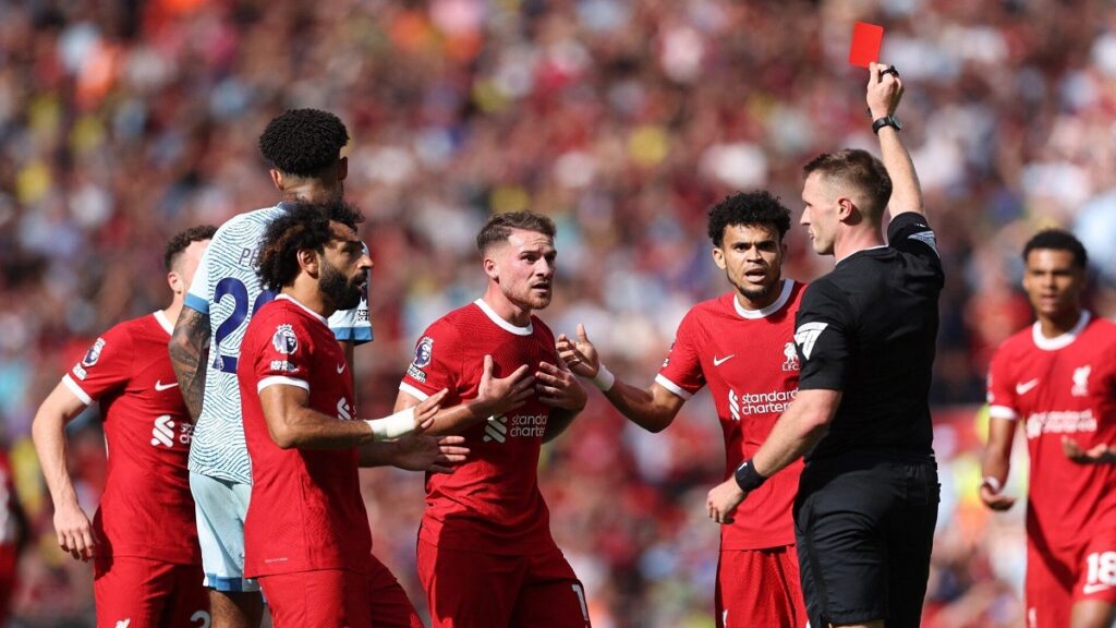 নিজেদের ঘরের মাঠ অ্যানফিল্ডে গত শনিবার (১৯ আগস্ট) প্রিমিয়ার লিগের ওই ম্যাচের ৫৮তম মিনিটে রায়ান ক্রিস্টির সঙ্গে বল দখলের লড়াইয়ে তার পায়ে আঘাত করে বসেন আর্জেন্টিনার বিশ্বকাপজয়ী মিডফিল্ডার ম্যাক অ্যালিস্টার। রেফারি সঙ্গে সঙ্গে তাকে লাল কার্ড দেখান।