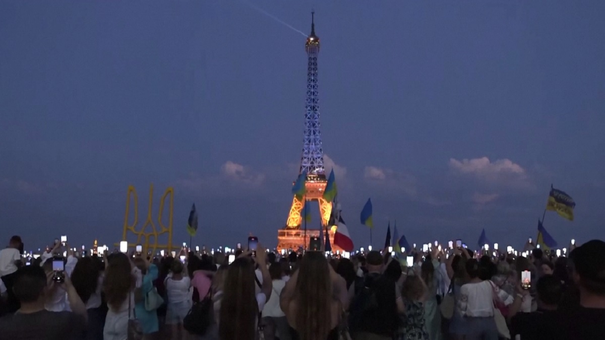 একইদিন সন্ধ্যায় জ্বলে ওঠে প্যারিসের বিখ্যাত আইফেল টাওয়ার। হলুদ-নীল আলোর মাধ্যমে জেলেনস্কির প্রতি ফ্রান্স জানায় পাশে থাকার অঙ্গীকার। সাবেক সোভিয়েত ইউনিয়ন থেকে ১৯৯১ সালে মুক্ত হয় ইউক্রেন। সে কারণেই ২৪ আগস্ট দেশটিতে উদযাপিত হয় স্বাধীনতা দিবস।