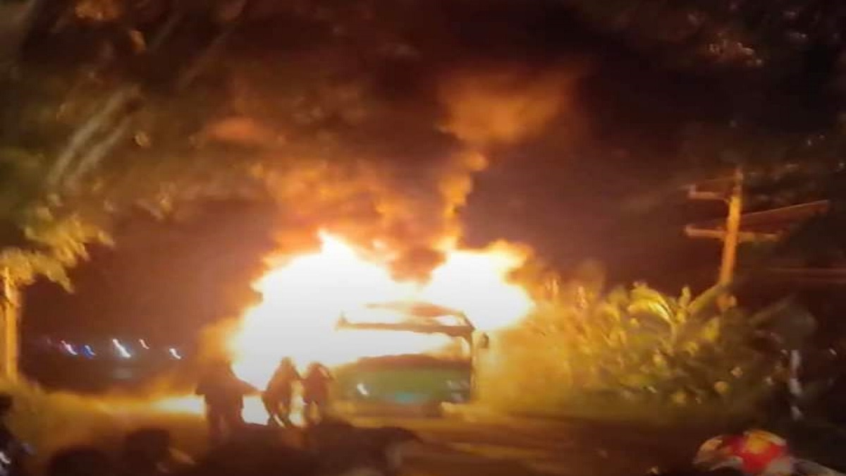 বরিশালে চলন্ত বাসের ইঞ্জিনে ত্রুটি, আগুনে ভস্মীভূত