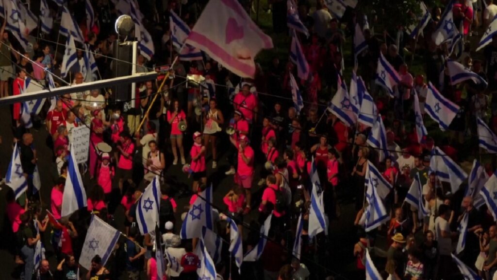 টানা ৩৪তম সপ্তাহে গড়ালো আন্দোলনটি। সংস্কার আইন বাতিলের দাবিতে আওয়াজ তোলেন বিক্ষোভকারীরা। আন্দোলনকারীদের দাবি, বিচার বিভাগের ক্ষমতা কমিয়ে স্বৈরতন্ত্রের পথে হাঁটছে সরকার। প্রধানমন্ত্রী বেনিয়ামিন নেতানিয়াহুর বিরুদ্ধে শ্লোগান দেয় তারা।