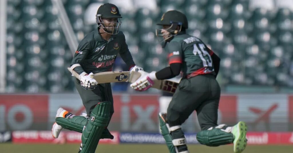 বুধবার (৬ সেপ্টেম্বর) লাহোরের গাদ্দাফি স্টেডিয়ামে টস জিতে আগে ব্যাটিং করার সিদ্ধান্ত নেন বাংলাদেশ দলের অধিনায়ক সাকিব আল হাসান। আগের ম্যাচের মতো এদিনও উদ্বোধনী ব্যাটার হিসেবে নামেন মেহেদী হাসান মিরাজ। আগের ম্যাচে সেঞ্চুরি করা মিরাজ পাকিস্তানের বিপক্ষে গোল্ডেন ডাক মেরে সাজঘরে ফেরেন। দ্বিতীয় ওভারে নাসিম শাহর করা প্রথম বলেই স্কয়ার লেগে ফখর জামানকে ক্যাচ দিয়ে ফেরেন মিরাজ।