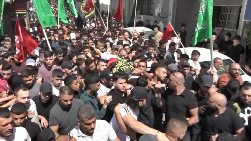 ইসরায়েল সেনাবাহিনীর ছোঁড়া গুলিতে নিহত ফিলিস্তিনির জানাজায় অংশ নিতে মানুষের ঢল নামে দখলকৃত পশ্চিম তীরে। রোববার (১০ সেপ্টেম্বর) হেবরনে নিহত কিশোরের মরদেহ নিয়ে প্রতিবাদ মিছিলে অংশ নেয় শত মানুষ। খবর রয়টার্সের।