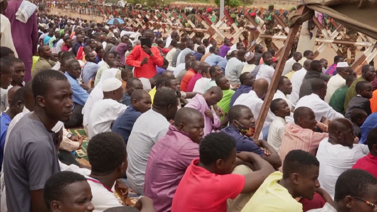 নাইজারে ফরাসি সামরিক ঘাঁটির সামনেই জুমার নামাজ আদায় করলেন বিক্ষোভকারীরা। শুক্রবার (১৫ সেপ্টেম্বর) নিয়ামের জামাতে যোগ দেয় হাজারো মুসল্লি। খবর রয়টার্সের।
