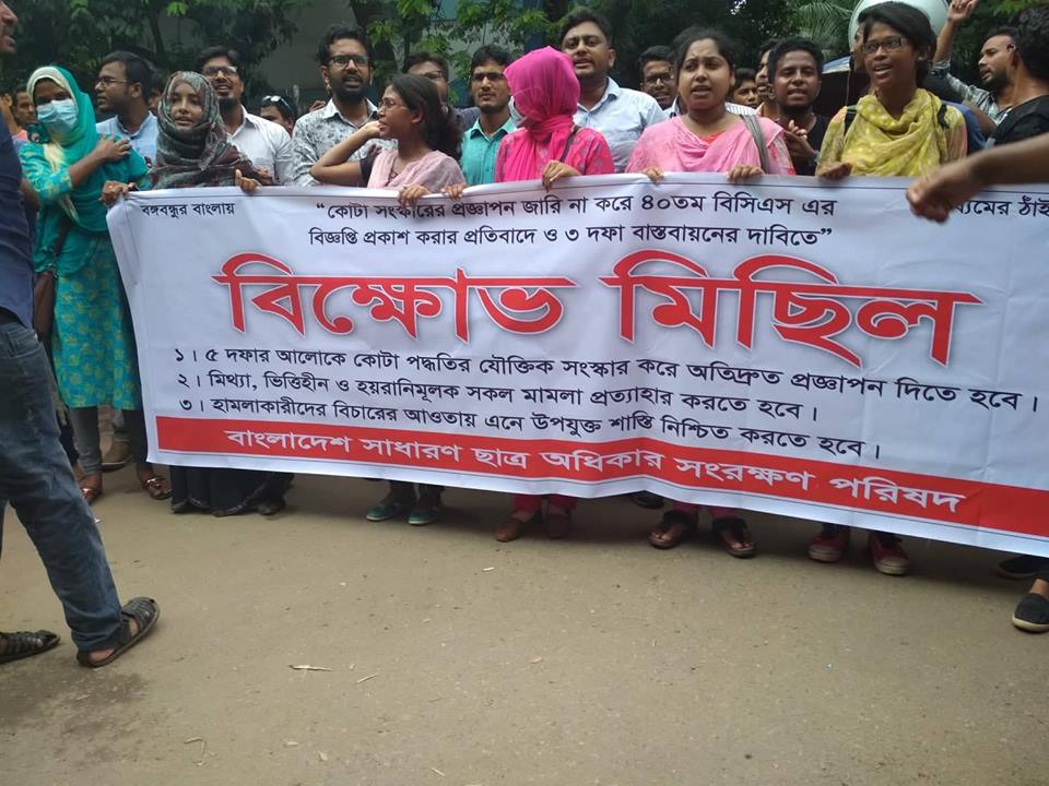 বাংলাদেশ সাধারণ ছাত্র অধিকার সংরক্ষণ পরিষদের ব্যানারে এই বিক্ষোভ মিছিল অনুষ্ঠিত হয়। এসময় শিক্ষার্থীরা ৩ দফা দাবি তোলে।