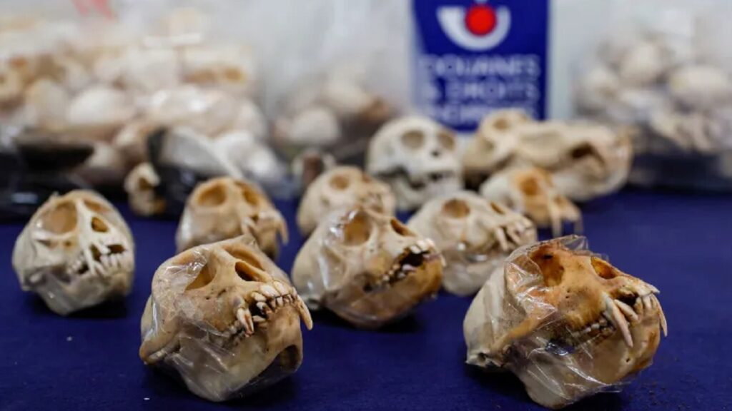 ফ্রান্সের একটি বিমানবন্দর থেকে বিভিন্ন প্রজাতির বানরের প্রায় ৪০০টি মাথার খুলি জব্দ করেছে ফরাসি কাস্টমস কর্মকর্তারা। বৃহস্পতিবার (২১ সেপ্টেম্বর) প্যারিসের চার্লস ডি গল বিমানবন্দরে প্যাকেজ করা অবস্থায় খুলিগুলো জব্দ করা হয়েছে। খবর এএফপির।