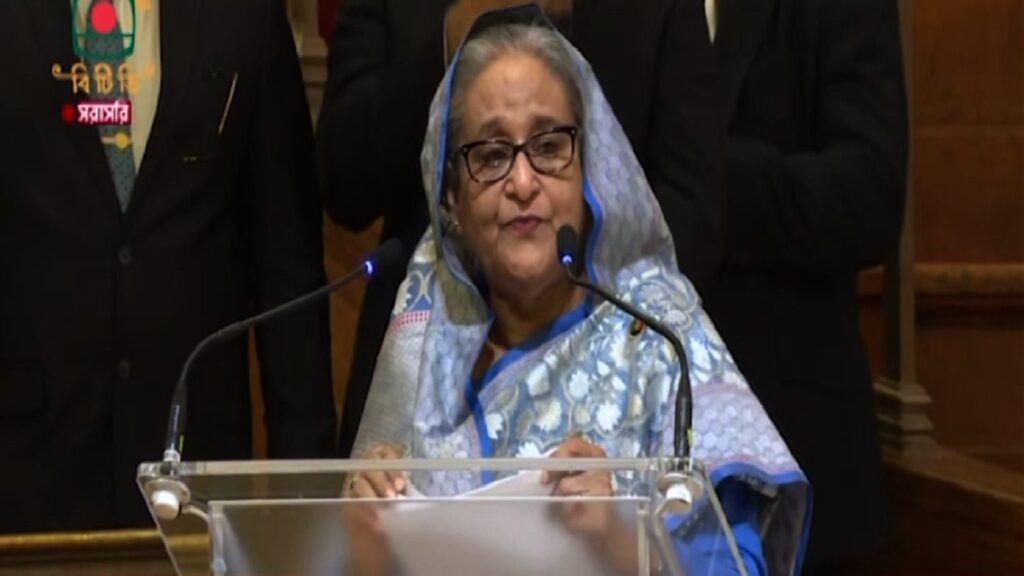 সোমবার (২ অক্টোবর) স্থানীয় সময় বিকেলে যুক্তরাজ্যের সেন্ট্রাল লন্ডনের ওয়েস্টমিনস্টার এলাকার ম্যাথডিস্ট চার্চ হলে নাগরিক সংবর্ধনায় এসব কথা বলেন প্রধানমন্ত্রী শেখ হাসিনা। যুক্তরাজ্য আওয়ামী লীগ এই সংবর্ধনার আয়োজন করে।