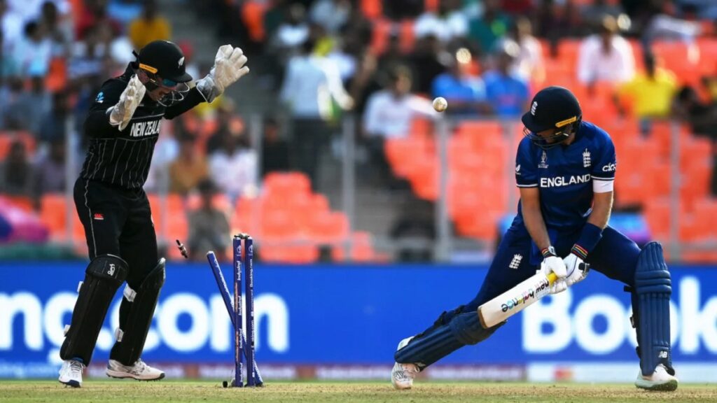 বিশ্বকাপের উদ্বোধনী ম্যাচে টসে হেরে আগে ব্যাটিংয়ে নেমে নিউজিল্যান্ডের নিয়ন্ত্রিত বোলিংয়ে নির্ধারিত ৫০ ওভার শেষে ৯ উইকেট হারিয়ে ২৮২ রানে থামে বর্তমান চ্যাম্পিয়ন ইংল্যান্ড। ইংলিশদের হয়ে সর্বোচ্চ ৭৭ রান করেন অভিজ্ঞ ব্যাটার জো রুট। জয়ের জন্য নিউজিল্যান্ডের প্রয়োজন ২৮৩ রান।