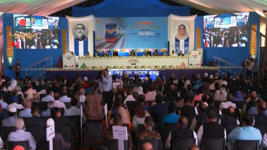 সেখানে সুধী সমাবেশে বক্তব্য রাখবেন তিনি। এরপর পদ্মা রেল সংযোগ প্রকল্পের মুন্সিগঞ্জের মাওয়া রেলস্টেশনে ফলক উন্মোচনের মাধ্যমে ঢাকা-ভাঙ্গা অংশের উদ্বোধন করবেন প্রধানমন্ত্রী। দুপুর পৌনে ১টায় মাওয়া থেকে ফরিদপুর জেলার ভাঙ্গা রেলওয়ে স্টেশনের উদ্দেশে ট্রেনে যাত্রা করবেন তিনি।
