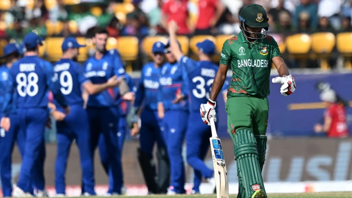 বিশ্বকাপে নিজেদের দ্বিতীয় ম্যাচে ইংল্যান্ডের বিপক্ষে ১৩৭ রানের বড় ব্যবধানে হেরেছে বাংলাদেশ। টস হেরে আগে ব্যাটিংয়ে নেমে দাওয়িদ মালানের সেঞ্চুরি, বেয়ারস্টো ও রুটের হাফ সেঞ্চুরির ওপর ভর করে ৯ উইকেট হারিয়ে ৩৬৪ রান সংগ্রহ করে ইংল্যান্ড। জবাবে ব্যাট করতে নামা বাংলাদেশ ১০ বল বাকি থাকতেই মাত্র ২২৭ রানে গুটিয়ে যায়। লিটন-মুশফিক ফিফটি করলেও বাকি ব্যাটারদের ব্যর্থতায় ম্যাচের ভাগ্য পাল্টাতে পারেনি টাইগাররা।
