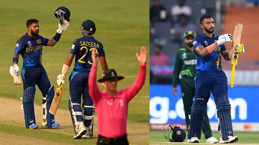 শুরুতেই ওপেনার কুশল পেরেরা শূন্য রানে আউট হয়ে গেলে ধাক্কা খায় লঙ্কানরা। তবে শুরুর ধাক্কা সামলে শ্রীলঙ্কা দলের হাল ধরেন কুশল মেন্ডিস। শুরু থেকেই আক্রমণাত্মক খেলা মেন্ডিস জুটি গড়েন পাথুম নিসাঙ্কার সাথে। শাদাব খানের বলে আউট হওয়ার আগে ৬১ বলে ৫১ রান করে পাথুম নিসাঙ্কা। হাফ সেঞ্চুরির পরে আউট হয়ে গেলেও ১৪ চার ও ৬ ছক্কায় ৭৭ বলে ১২২ রানে নিজের ব্যক্তিগত ও বিশ্বকাপে শ্রীলঙ্কার হয়ে দ্রুততম সেঞ্চুরি করেন কুশল মেন্ডিস।