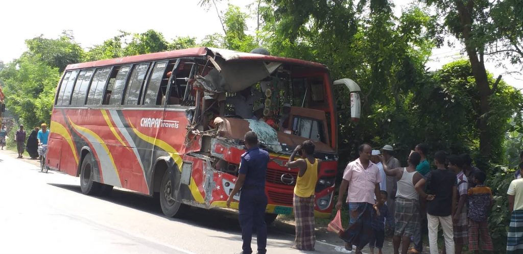 নাটোর ফায়ার সার্ভিসের স্টেশন অফিসার মুহিউদ্দিন জানান, রাজশাহী থেকে ঢাকাগামী গ্রামীণ ট্রাভেলসের সাথে বিপরীতমুখি চাঁপাই এক্সপ্রেস পরিবহনের বাসের মুখোমুখি সংঘর্ষ হয়। এ সময় বাস চাপায় বীরেন্দ্র নাথ পাহান নামের এক সাইকেল আরোহী ঘটনাস্থলেই নিহত হয়। এ সময় আহত হয় অন্তত ১২ বাসযাত্রী। খবর পেয়ে পুলিশ ও ফায়ার সার্ভিস ঘটনাস্থলে গিয়ে আহতদের মধ্যে ৫ জনকে উদ্ধার করে সদর হাসপাতালে ভর্তি করে। অন্যদের প্রাথমিক চিকিৎসা দেওয়া হয়েছে। নিহত বীরেন নাথ পাহানকে পরিবারের কাছে হস্তান্তর করা হয়েছে।