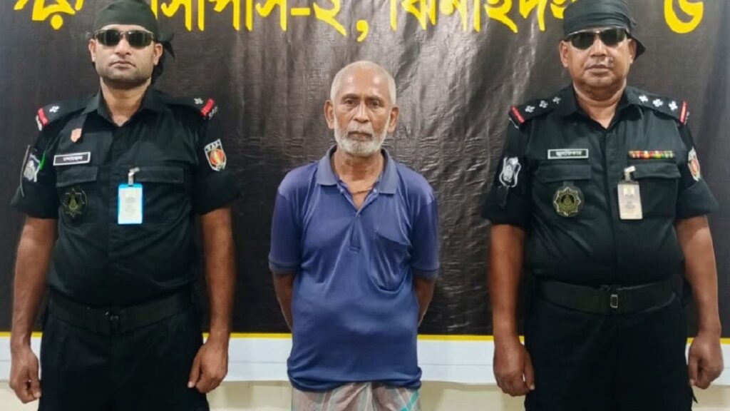 ঝিনাইদহে দেশীয় আগ্নেয়াস্ত্রসহ নিরাপদ মন্ডল (৭০) নামের এক বৃদ্ধকে গ্রেফতার করেছে র্যাব। শুক্রবার (১৩ অক্টোবর) দিবাগত রাত সাড়ে ১২টার দিকে জেলার শৈলকুপা উপজেলার মালিথিয়া এলাকা থেকে দেশীয় একটি আগ্নেয়াস্ত্রসহ (পাইপগান) তাকে গ্রেফতার করা হয় ।