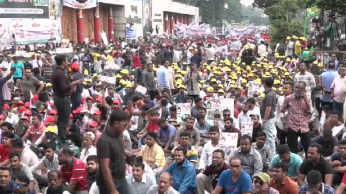 ঢাকার বায়তুল মোকাররম মসজিদের দক্ষিণ গেইটে শুরু হয়েছে ঢাকা মহানগর উত্তর ও দক্ষিণ আওয়ামী লীগের শান্তি ও উন্নয়ন সমাবেশ।