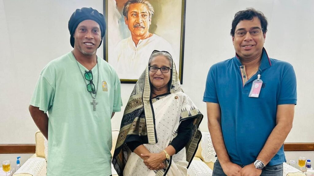 প্রধানমন্ত্রী শেখ হাসিনার সঙ্গে সাক্ষাৎ করেছেন ব্রাজিলিয়ান কিংবদন্তি ফুটবলার রোনালদিনহো। এ সময় বঙ্গবন্ধুর কনিষ্ঠ কন্যা শেখ রেহানাও উপস্থিত ছিলেন।