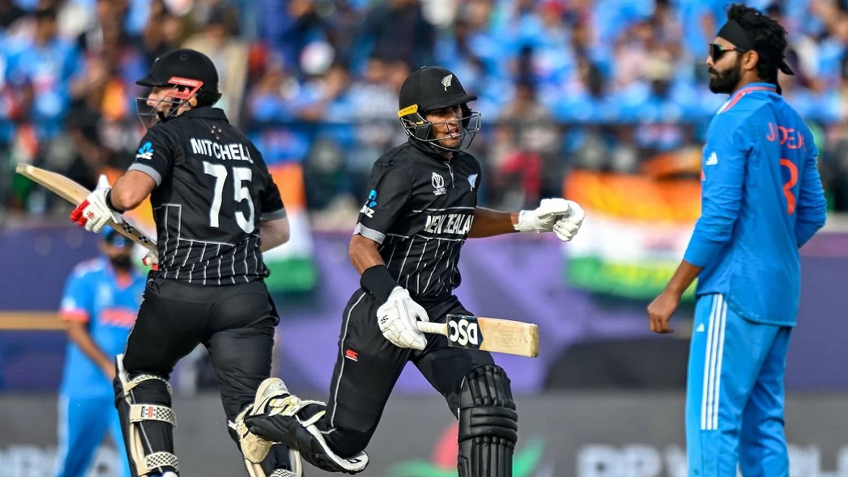 পাওয়ারপ্লে’তে মাত্র ৩৪ রান তোলা কিউই ব্যাটাররা এরপর নিজেদের খোলস থেকে বেড়িয়ে আসে। চলতি আসরের অন্যতম সেরা স্পিনার কুলদীপ যাদবের বলে রীতিমতো ঝড় তুলেন রবীন্দ্র ও মিচেল। ৫টি চার ও ১টি ছক্কার সাহায্যে ৫৬ বলে ওয়ানডে ক্যারিয়ারের ৩য় ফিফটি তুলে নেন রবীন্দ্র। অন্যদিকে ৩টি চার ও ২টি ছক্কার সাহায্যে ৬০ বলে ওয়ানডে ক্যারিয়ারের ৫ম ফিফটি স্পর্শ করেন মিচেল।