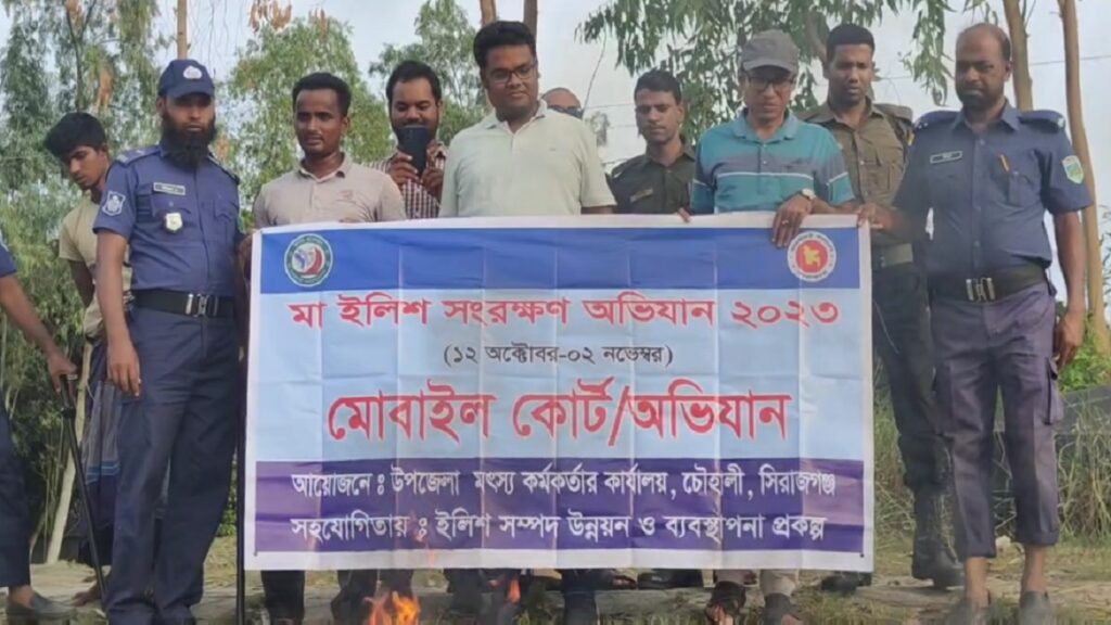 সিরাজগঞ্জের চৌহালী ও বেলকুচিতে নিষেধাজ্ঞা অমান্য করে যমুনায় মা ইলিশ ধরায় ২৫ অসাধু জেলেকে ভ্রাম্যমাণ আদালত ১০ দিন করে বিনাশ্রম কারাদণ্ড দিয়েছে। এ সময় মাছ ধরার ১ লাখ ৩৫ হাজার মিটার কারেন্ট জাল জব্দ করে পুড়িয়ে দেয়া হয়।