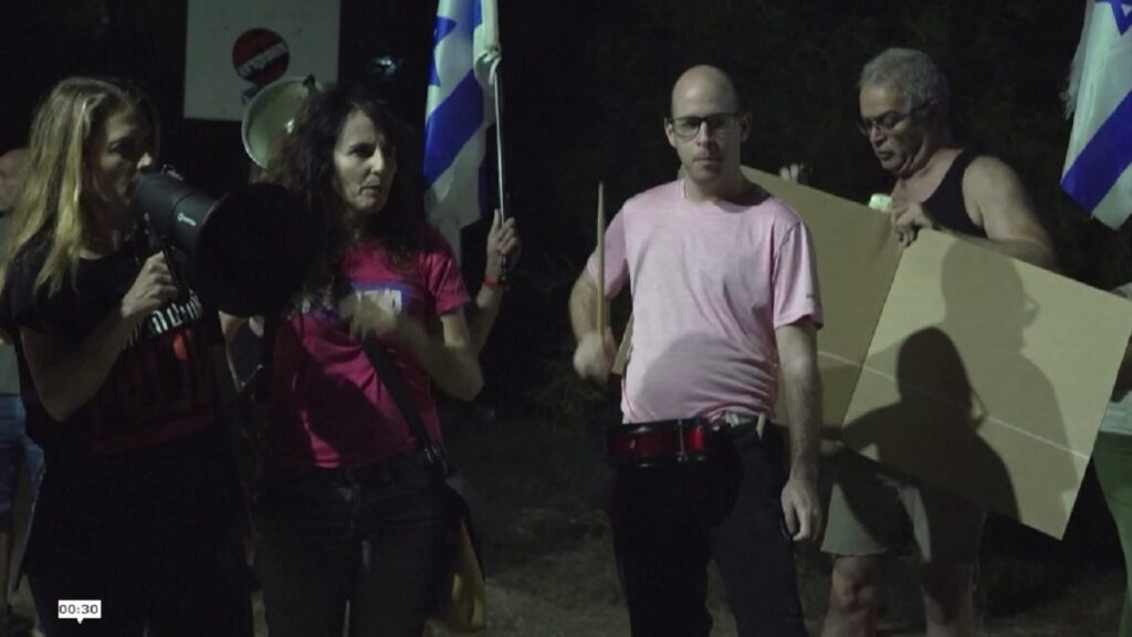 জিম্মিদের ছবি হাতে জড়ো হন বিক্ষোভকারীরা। এসময় তারা প্রধানমন্ত্রী বেনিয়ামিন নেতানিয়াহুর বিরুদ্ধে স্লোগানও দেন। স্বজনরা জানায়, জিম্মিদের ফিরিয়ে আনতে কার্যকর কোনো পদক্ষেপ নিচ্ছে না নেতানিয়াহু সরকার। এরইমধ্যে, ইসরায়েলি সামরিক বাহিনী গাজায় স্থলাভিযান শুরু করায় জিম্মিদের নিরাপত্তা নিয়ে আরও বেশি চিন্তিত তারা।