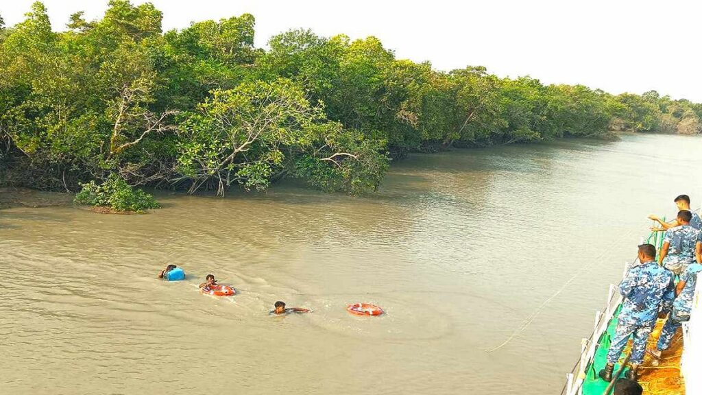 কোস্টগার্ডের পক্ষ থেকে জানানো হয়, মা ইলিশ রক্ষা অভিযানের টহলের সময় সুন্দরবন সংলগ্ন মান্দরবাড়িয়া দ্বীপে তিন জেলেকে উদ্ধার করা হয়। গত ২৮ অক্টোবর সুন্দরবন সংলগ্ন মান্দরবাড়িয়া এলাকায় সমুদ্রে মাছ ধরার সময় জেলেদের নৌকাটির ইঞ্জিন বিকল হয়ে নিয়ন্ত্রণহীনভাবে সেটি ভাসতে থাকে এবং একপর্যায়ে সেটি ডুবে যায়। পরবর্তীতে জেলেরা উত্তর মান্দারবাড়িয়া দ্বীপে আশ্রয় গ্রহণ করে। সেখান তারা অনাহারে জীবনযাপন করছিল। সেখান থেকেই তাদের ভাসমান অবস্থায় উদ্ধার করা হয়।