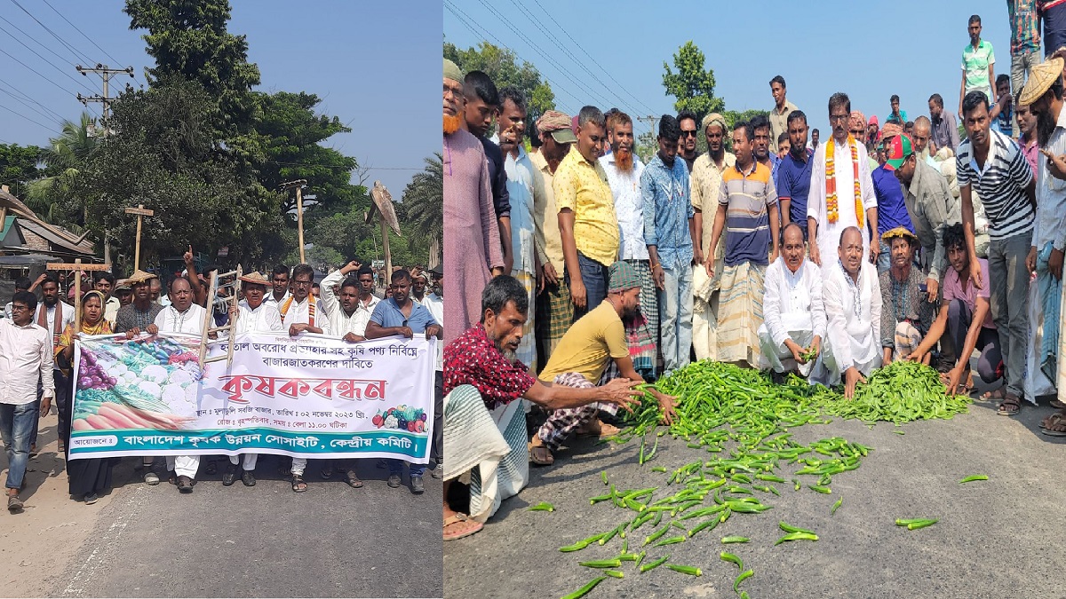 বৃহস্পতিবার (২ নভেম্বর) দুপুরে ঈশ্বরদী উপজেলার পাবনা-রাজশাহী মহাসড়কের কৃষি ভাণ্ডারখ্যাত মুলাডুলি সবজি আড়তের সামনে বাংলাদেশ কৃষক উন্নয়ন সোসাইটি কেন্দ্রীয় কমিটির ব্যানারে এ কর্মসূচি পালন করা হয়।
