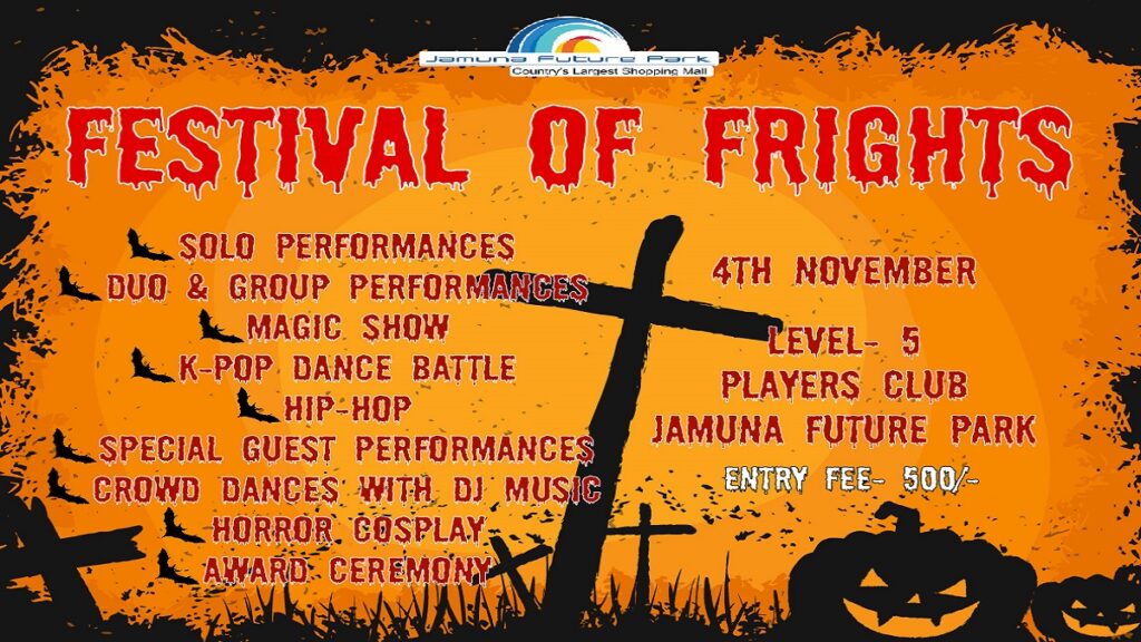 হ্যালোইন উপলক্ষ্যে দক্ষিণ এশিয়ার সর্ববৃহৎ শপিংমল যমুনা ফিউচার পার্কে অনুষ্ঠিত হতে যাচ্ছে ‘ফেস্টিভাল অব ফ্রাইটস’। আগামী শনিবার (৪ নভেম্বর) ফিউচার পার্কের সি-জোন, লেভেল-৫ এর প্লেয়ার্স ক্লাবে বিকেল ৩টায় আয়োজিত হবে অনুষ্ঠানটি।