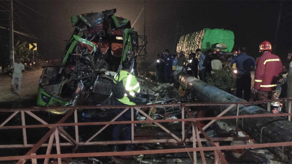 এতে ঘটনাস্থলেই তিনজন এবং পরে ময়মনসিংহ মেডিকেল কলেজ হাসপাতালে আরও একজনের মৃত্যু হয়। খবর পেয়ে পুলিশ ফায়ার সার্ভিস ঘটনাস্থলে গিয়ে উদ্ধার কার্যক্রম চালায়। বাসটির বেপরোয়া গতির কারণে দুর্ঘটনাটি ঘটেছে বলে প্রাথমিকভাবে ধারণা করছে পুলিশ।