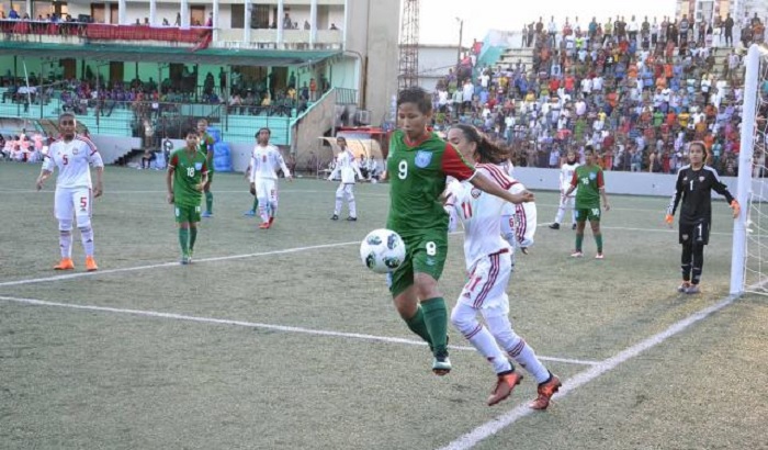 প্রথমার্ধের শেষ দিকে মনিকা চাকমার কর্নার শটে আরব আমিরাত ডিফেন্ডার আলাইয়া হুমাইদ আত্মঘাতী গোল করলে ৫-০ লিড নিয়ে বিরতিতে যায় বাংলাদেশ।
