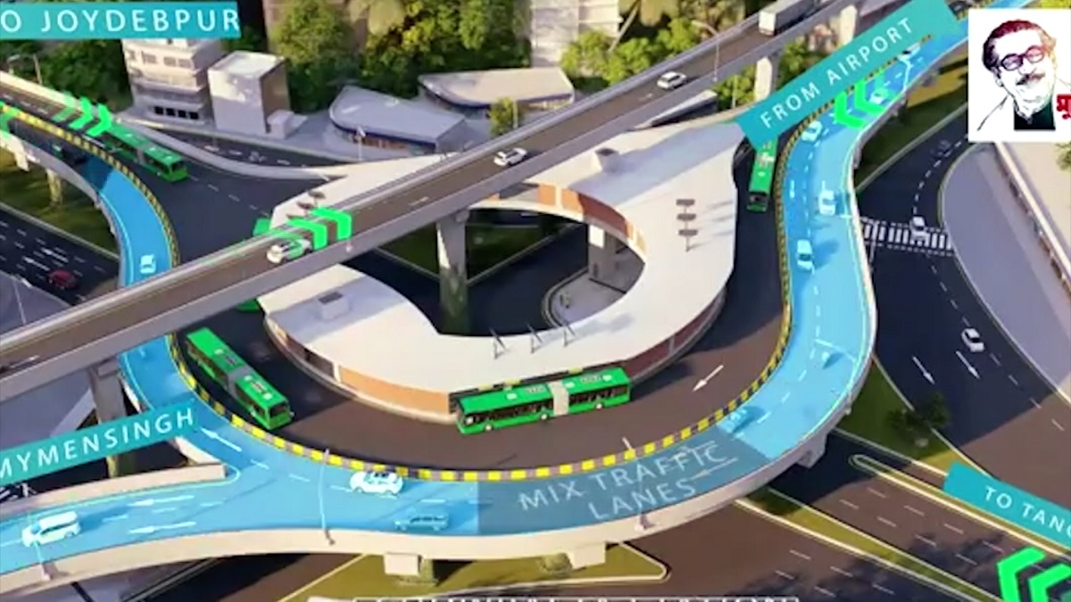 যাত্রীদের জন্য এমন ব্যবস্থা দেশে এই প্রথম। এই প্রকল্প সম্পন্ন হলে লেনের দুই পাশ দিয়ে চলবে গণপরিবহন। মাঝখান দিয়ে চলবে নির্দিষ্ট কিছু বাস। থাকবে স্টেশন, তাও আবার উড়াল সড়কে। তার মধ্যে সাতটি স্টেশন থাকবে মাথার ওপরে আর ১৮টি থাকবে নিচে।