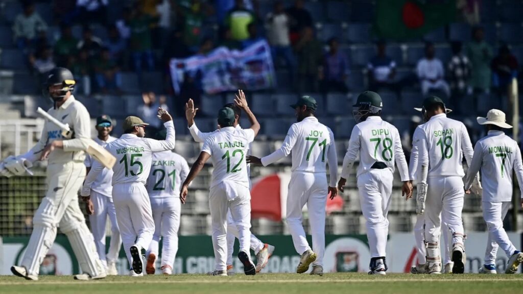 সিলেট টেস্ট জয়ের দ্বারপ্রান্তে রয়েছে বাংলাদেশ। ৫ম ও শেষ দিনে জয়ের জন্য টাইগারদের প্রয়োজন ৩ উইকেট। বাংলাদেশের দেয়া ৩৩২ রানের লক্ষ্য ব্যাট করতে নেমে তাইজুল ইসলামের স্পিন ঘূর্ণিতে মাত্র ৮১ রানেই ৬ উইকেট হারিয়ে ব্যাটিং বিপর্যয়ে পড়েছে সফরকারীরা। প্রথম ইনিংসে চার উইকেট নেয়া তাইজুল দ্বিতীয় ইনিংসেও বল হাতে জাদু দেখিয়েছেন। চতুর্থ দিন শেষে কিউইদের সংগ্রহ ৭ উইকেট হারিয়ে ১১৭ রান।