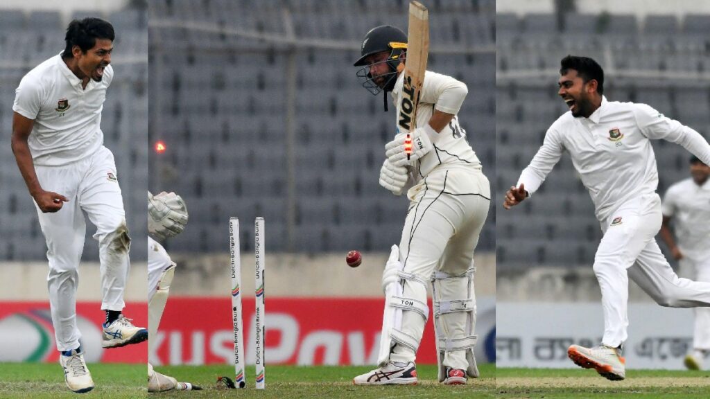 বুধবার (৬ ডিসেম্বর) প্রথম ইনিংসে ১৭২ রানে অলআউট হয়ে যায় টাইগাররা। জবাব দিতে নেমে ১১ দশমিক ৪ বলেই কিউইদের ৫ উইকেট তুলে নিয়েছেন দুই টাইগার স্পিনার তাইজুল ও মিরাজ। যার মধ্যে মিরাজ নিয়েছেন ৩ উইকেট আর সিলেট টেস্টে ১০ উইকেট নেয়া তাইজুল নেন ২ উইকেট।