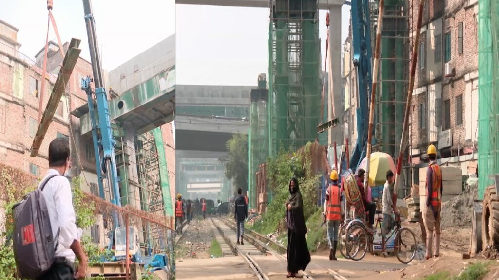 রাজধানীর পূর্ব নাখালপাড়ায়ও দেখা যায় একই অবস্থা। গত বৃহস্পতিবার এখানেই ক্রেনের আঘাতে লাইনচ্যুত হয়েছিলো কমিউটার ট্রেনের দুটি বগি। কিন্তু তারপরেও নির্বিকার সবাই। দেয়া হচ্ছে না পর্যাপ্ত জননিরাপত্তা। এখানেও ক্যামেরা দেখেই তেড়ে আসেন প্রকল্পের কর্মীরা। বাধা দিয়ে বলেন, ছবি নেয়া যাবে না।