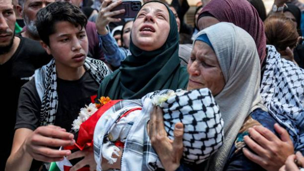প্রিয় সন্তানের লাশ হাতে নিয়ে শোক করছেন একজন ফিলিস্তিনি মা। ছবি: গেটি ইমেজ।