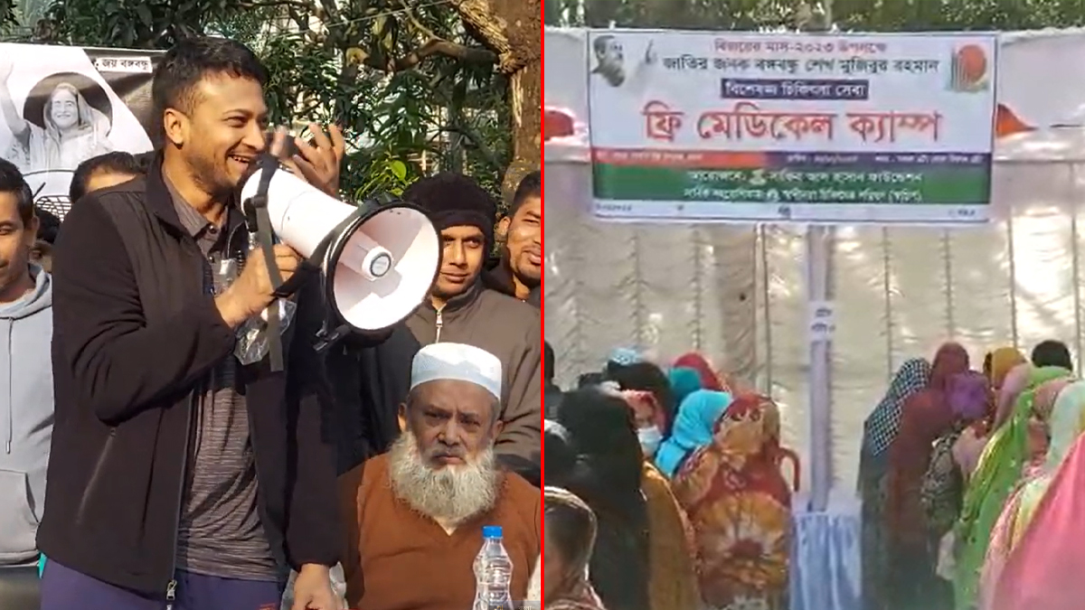 এদিন সকাল ১০টা থেকে শুরু হর ফ্রি মেডিকেল ক্যাম্প। দুপুরে সেখানে যান সাকিব। দেখা করেন